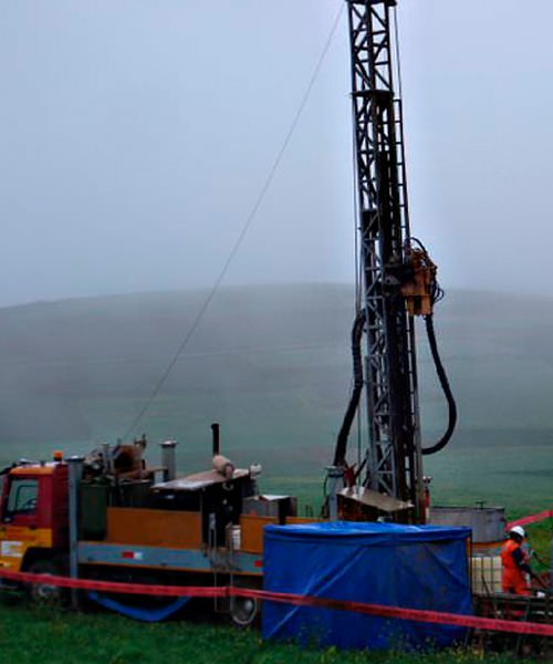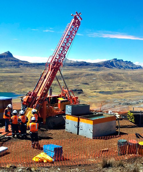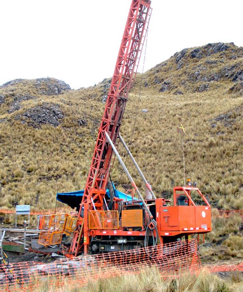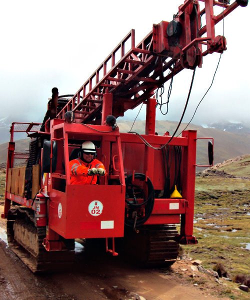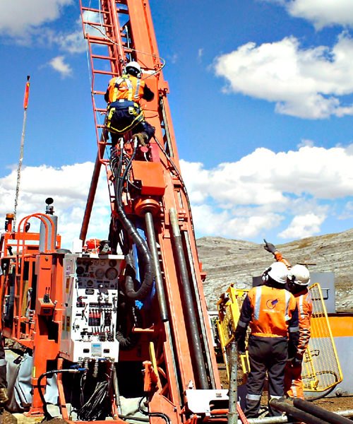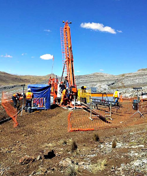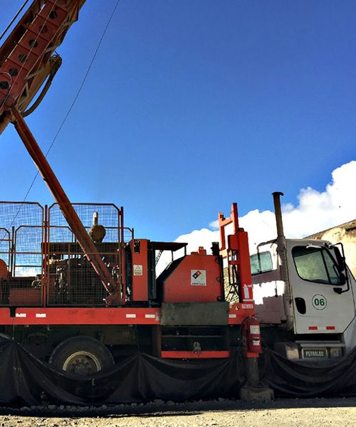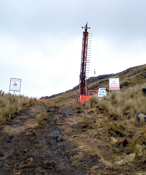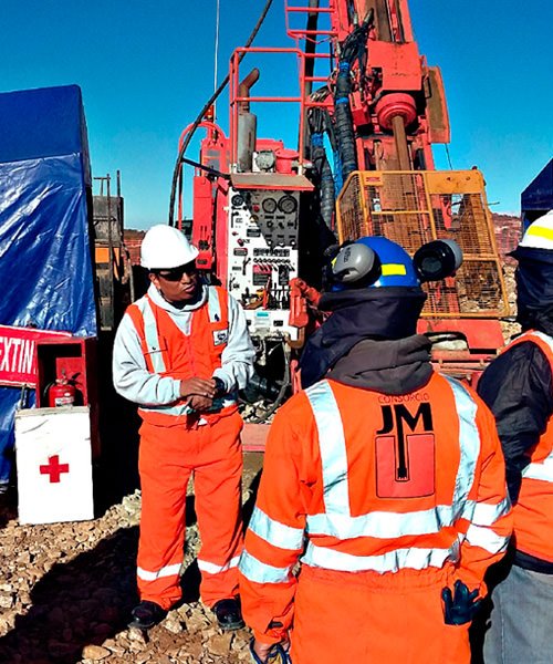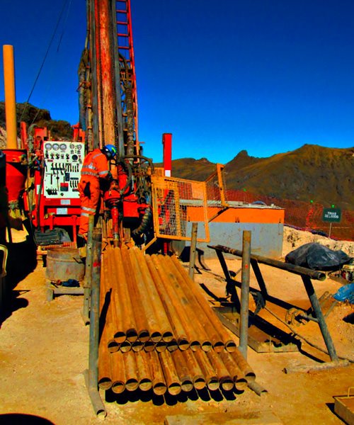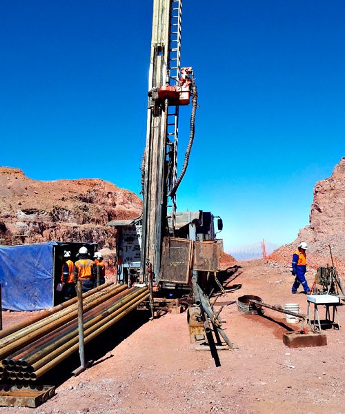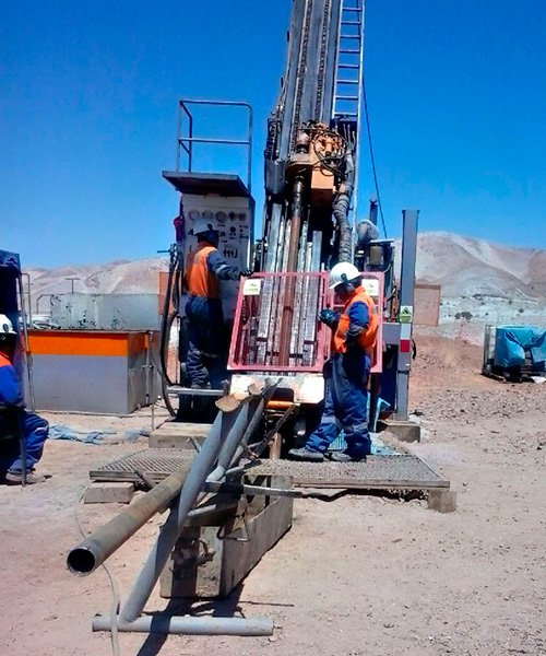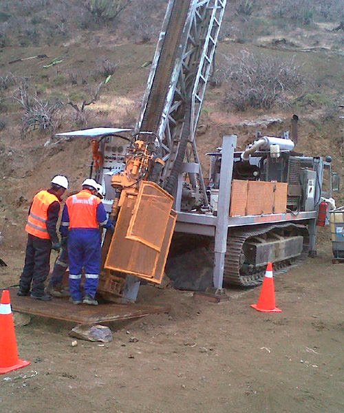 Perforación en diámetros PQ, HQ, NQ con ángulos de -45° a 90° de hasta 1800 mts.