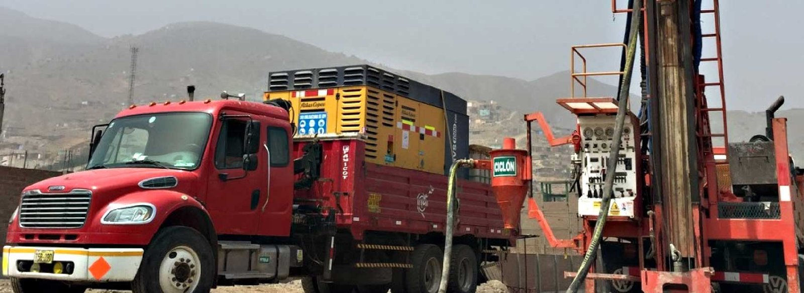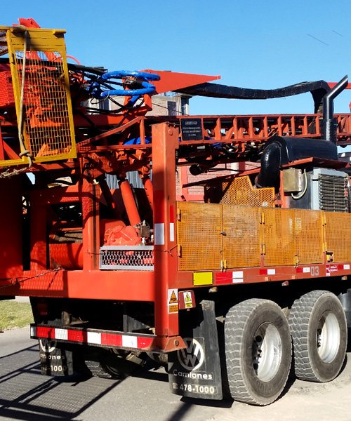 Perforaciones hasta 250 mts, mediante aire comprimido con tricono o martillo de fondo.